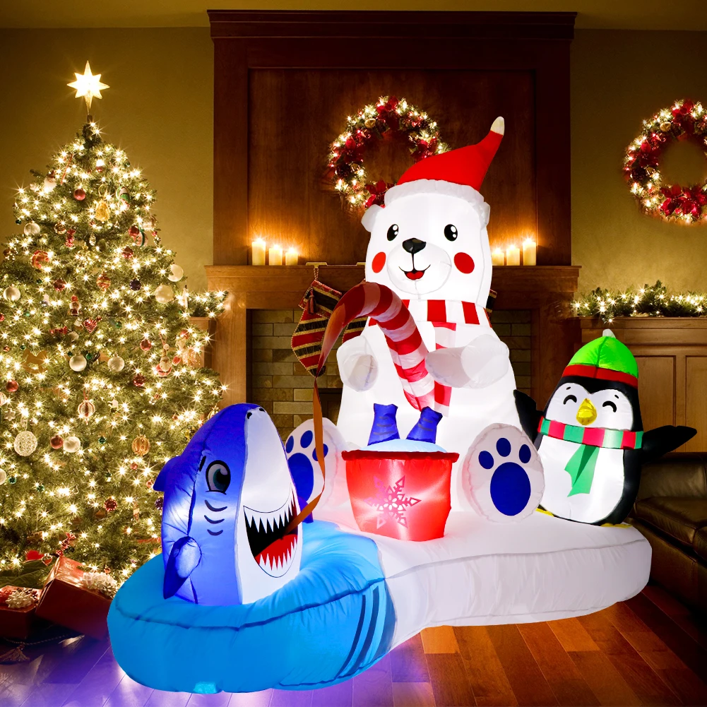 Bring the magic of the North Pole to your yard with this charming 6 ft inflatable polar bear and penguin duo! Perfect for spreading holiday cheer, this delightful decoration will be the centerpiece of your Christmas display.