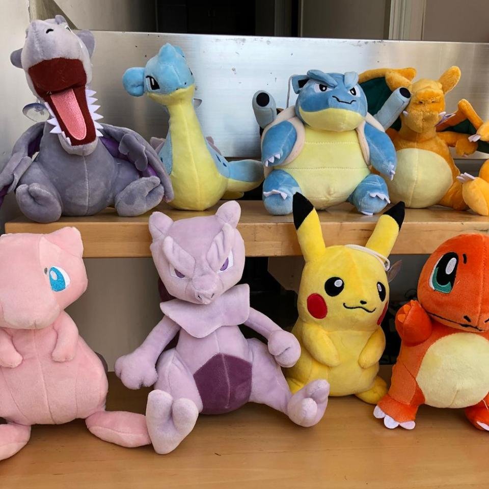 Pikachus 23cm, Pichu 25cm, Charmander 19cm, Squirtle 20cm, Bulbasaur 16cm, Cyndaquil 20cm, Totodile 22cm, Chikorita 20cm, Snorlax 17cm, Lapras 20cm, Gengar 17cm, Ivysaur 18cm, popplio 18cm, Snorlax 17cm 1, Eevee 20cm, Flareon 20cm, Vaporeon 23cm, Jolteon 20cm, Umbreon 25cm, Espeon 23cm, Litten 20cm, marill 15cm, Teddiursa 22cm, Cubone 23cm, Arbok 23cm, Mewtwo 22cm, Mew 20cm, Jigglypuff 15cm, Igglybuff 15cm, Mr.Mime 20cm, 18cm Gengar A, Dragonite 20cm, Aerodactyl 20cm, 18cm Gengar B, Poliwhirl 18cm, Togepi 18cm, new Squirtle 22cm, Growlithe 20cm, Ice Vulpix 20cm, Vulpix 20cm, Ball 8cm