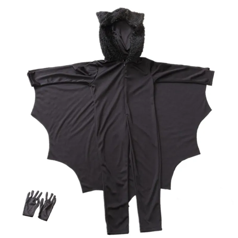 The costume comes with a large hood that features adorable bat ears and wings, creating an authentic bat-like appearance.