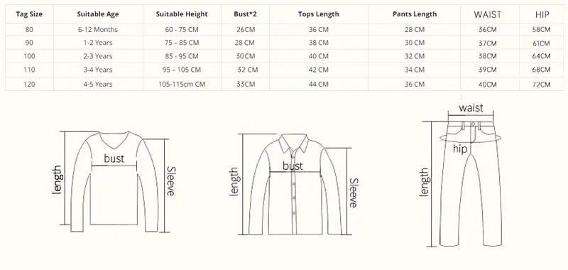 6-12M (80), 1-2T (90), 2-3T (100), 3-4T (110), 4-5T (120)