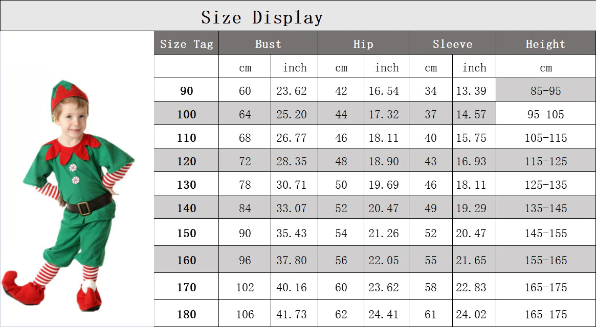 Elf Girl ( Hat & Socks ), Elf Boy ( Hat & Socks ), Santa Girl ( Hat & Dress ), Santa Boy ( Hat & Dress ), Christmas Tree ( Dress & Hat ), Santa Claus ( Hat & Dress ), Christmas Sequin (Headband & Dress ), Elegant Red Dress, Santa Claus ( Cloak & Dress ), Red Sequin ( Hat & Socks ), Red Elf ( Hat & Shoes ), Green ( Dress & Hat ), Red Flower ( Dress & Headband ), Santa Red ( Dress & Headband ), Snow Red ( Dress & Headband ), Santa Blue ( Dress & Hatbands ), Santa Claus T -Shirt, Hat and beard, Christmas Hat