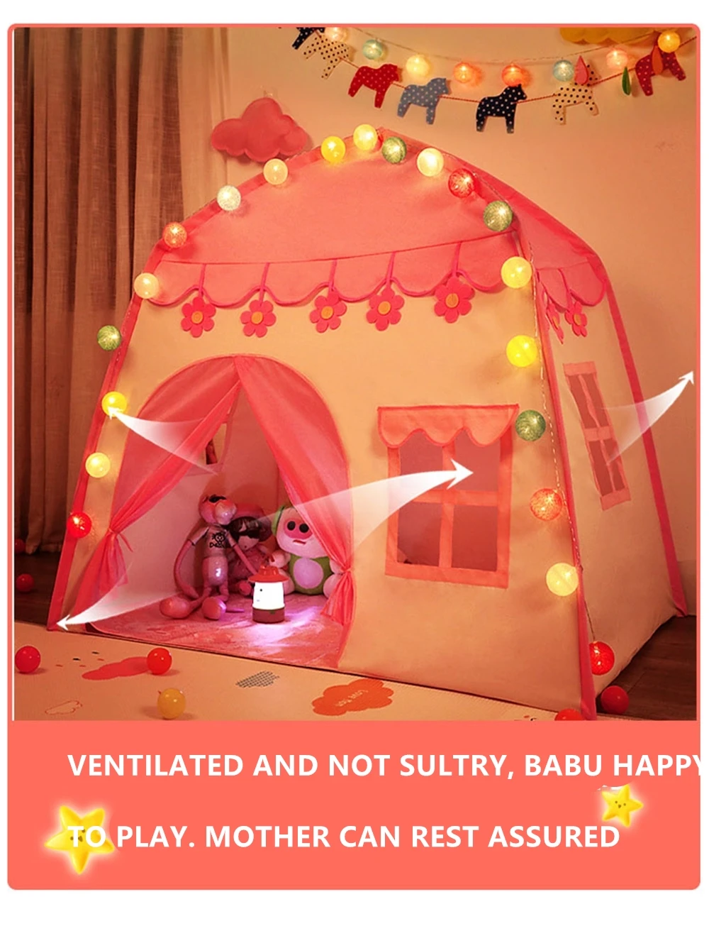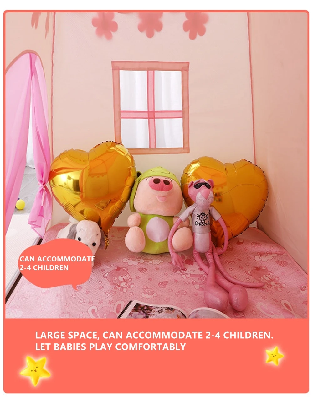 Ideal for both indoor and outdoor play, the Fairyland Tent is perfect for sleepovers, backyard camping, or cozy corner playrooms.