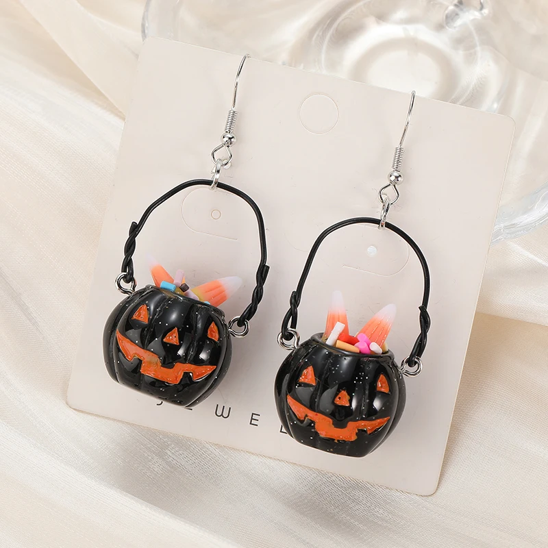 Embrace the spooky season with these Halloween Candy Bucket Pumpkin Earrings—perfect for adding a playful touch to your festive look.