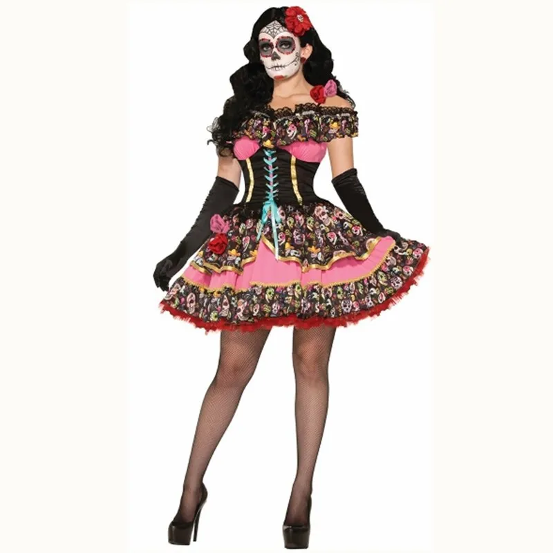 Step into the haunting world of the Day of the Dead with this stunning Halloween Ghosts Bride Dress For Women.