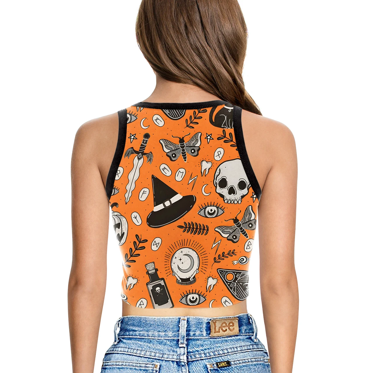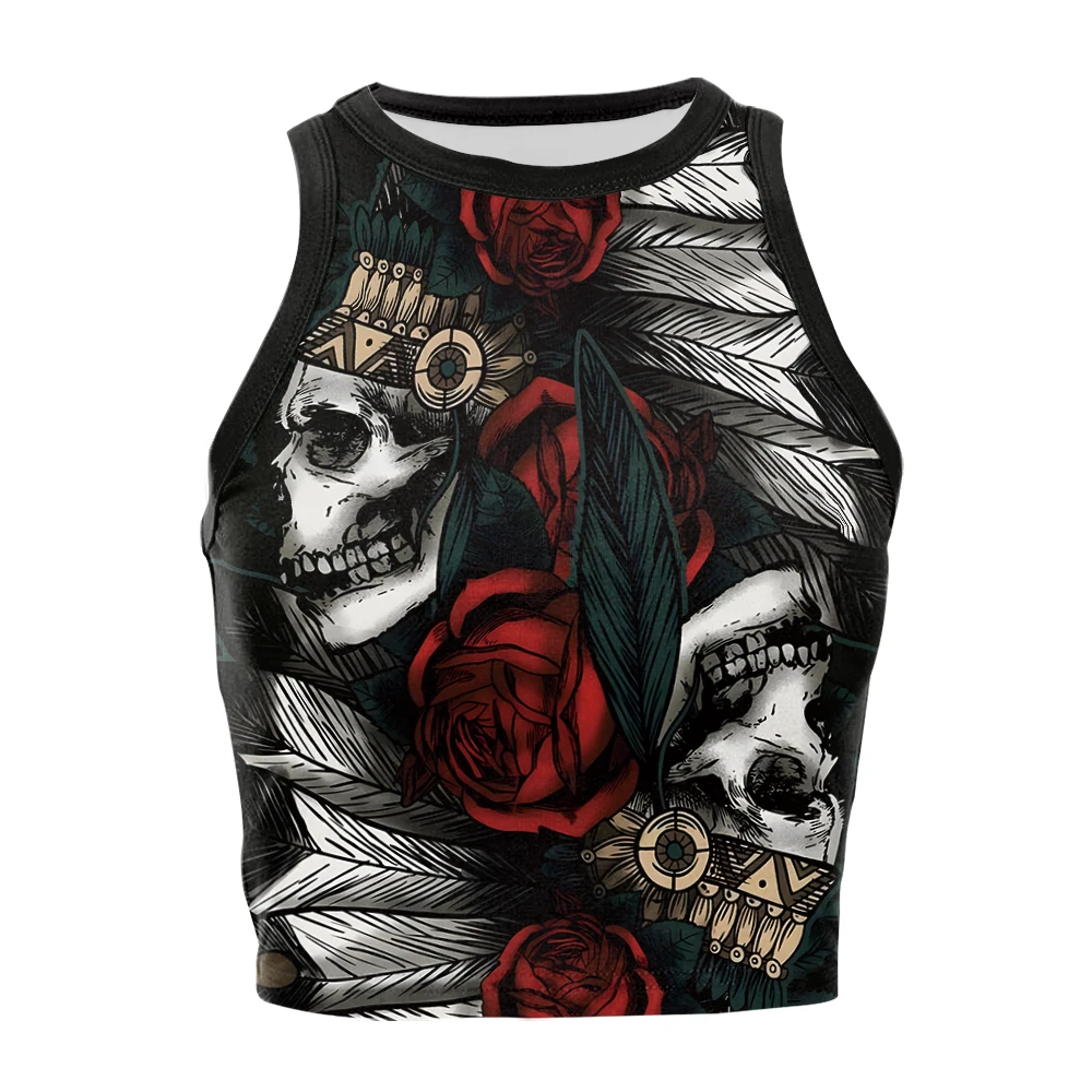 This sleeveless vest is designed with a flattering round neckline, perfect for adding a subtle spooky touch to your Halloween look.