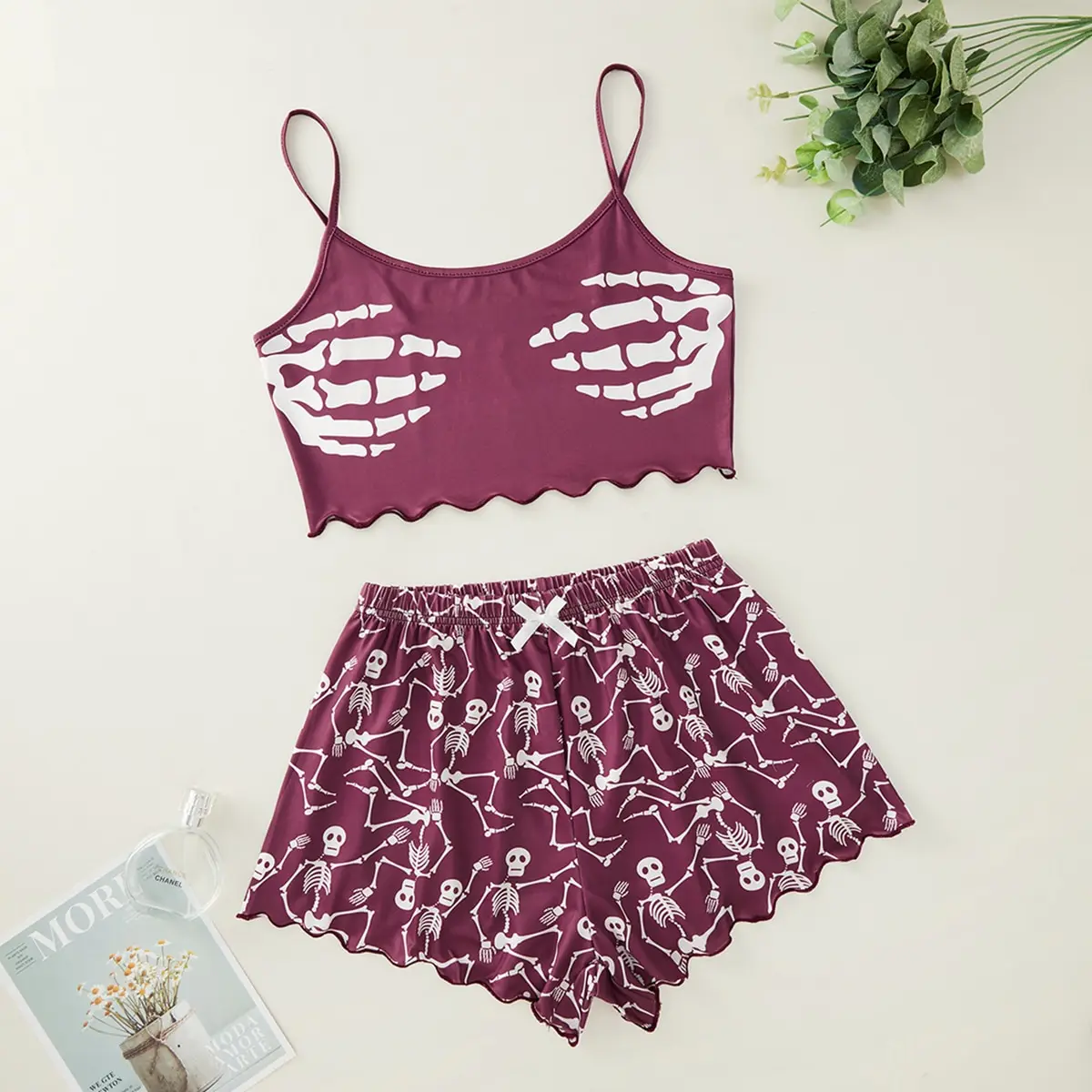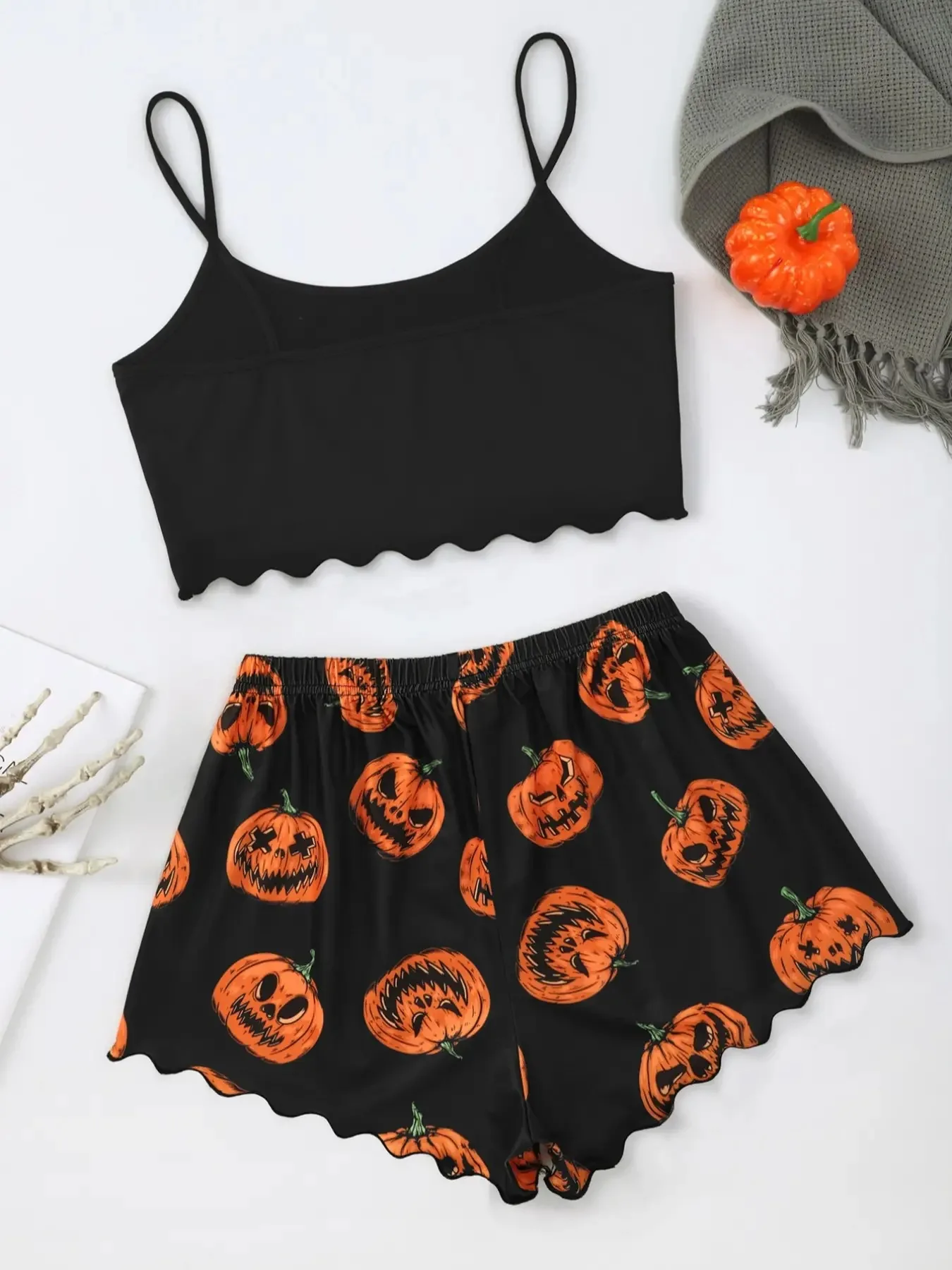Featuring fun Halloween-inspired patterns like pumpkins, skeleton , and haunted ghost , this set adds a playful twist to your sleepwear collection.