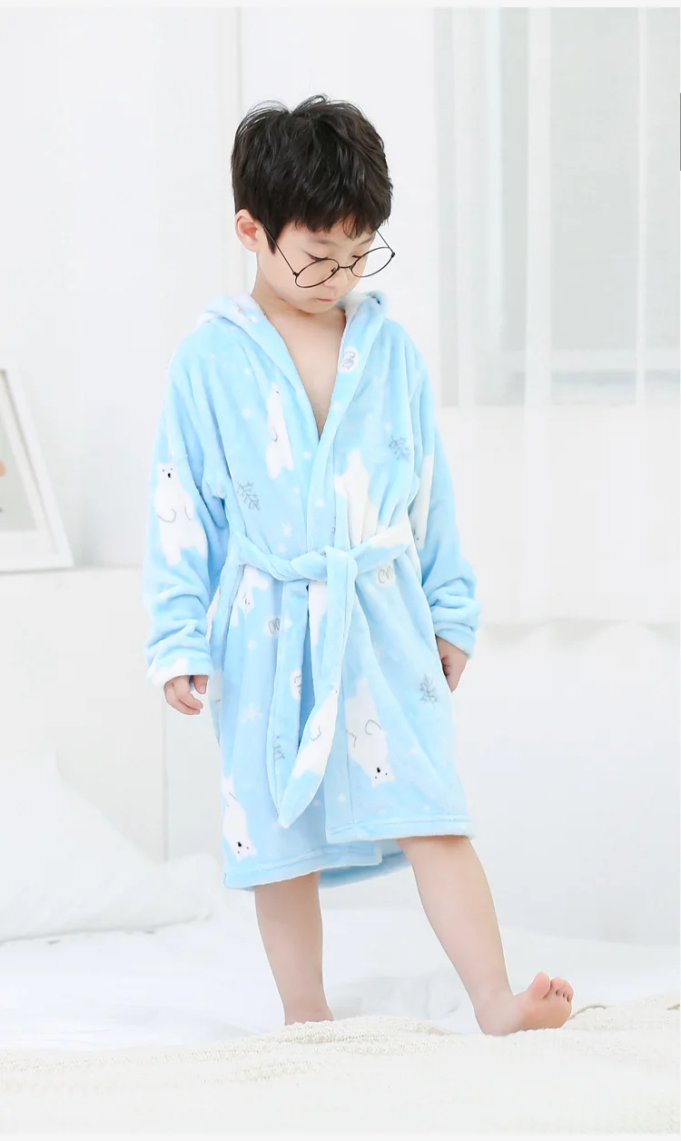 Keep your little ones cozy and happy with this thickened warm flannel bathrobe, designed for everyday home wear, sleep time, and after-bath comfort. Cute cartoon prints make it a kid-favorite!