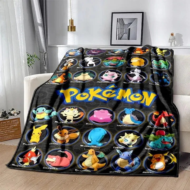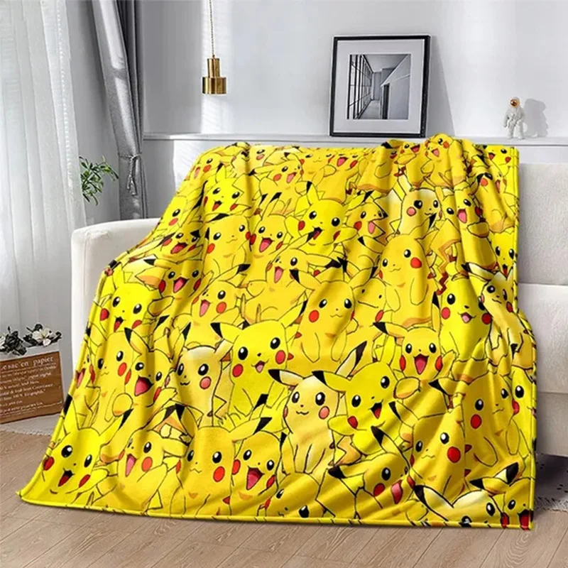 🌟Flannel Blanket Perfect for home, sofa, or lunch breaks, this blanket features adorable Pikachu figures from the Pokémon cartoon anime. 🎨 Ideal for children, students, and Pokémon enthusiasts alike, it’s the perfect nap cover for kids! 💤