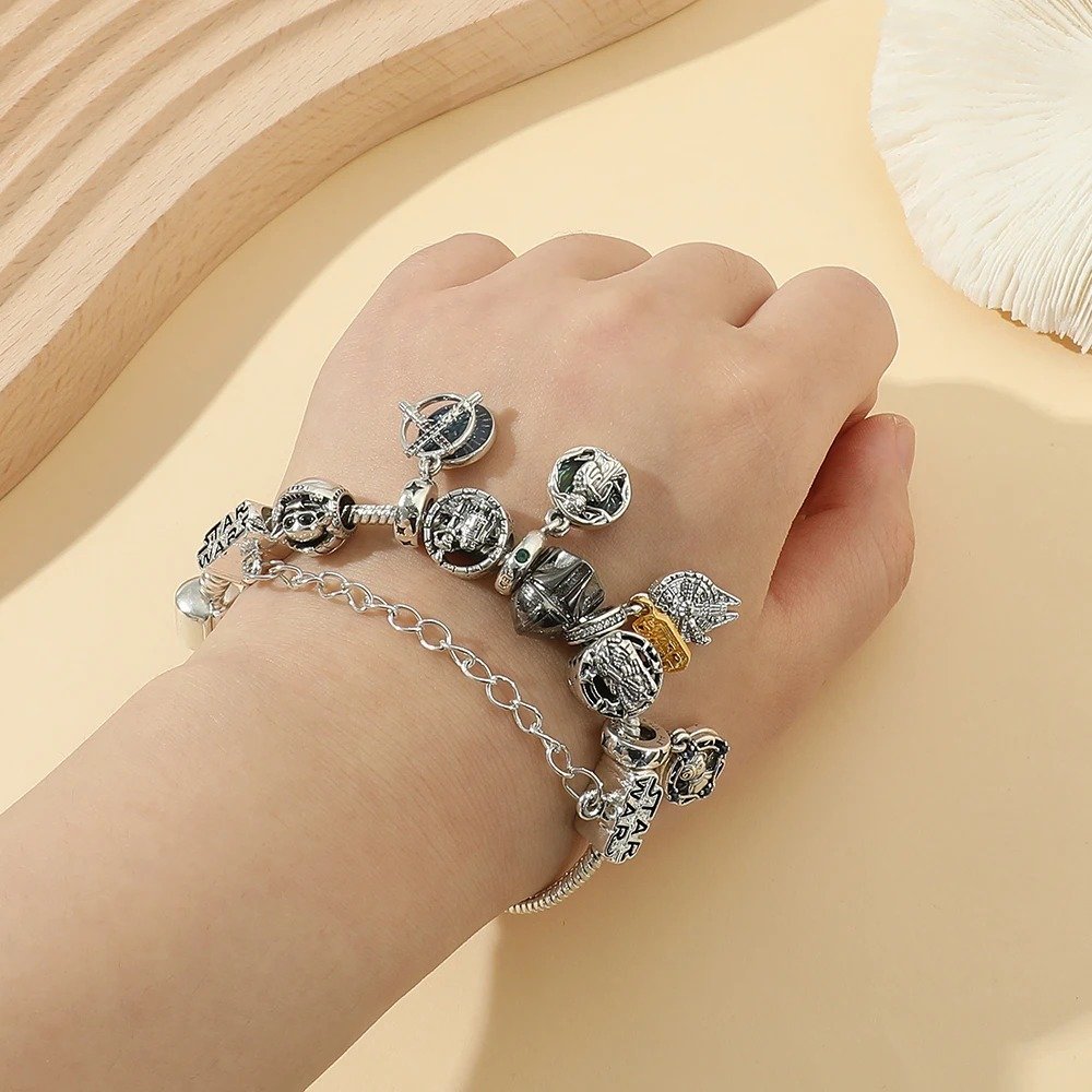 Show off your love for Star Wars with this charm bracelet, adorned with legendary characters such as Darth Vader, Yoda, and R2D2. Ideal for fans of all ages.